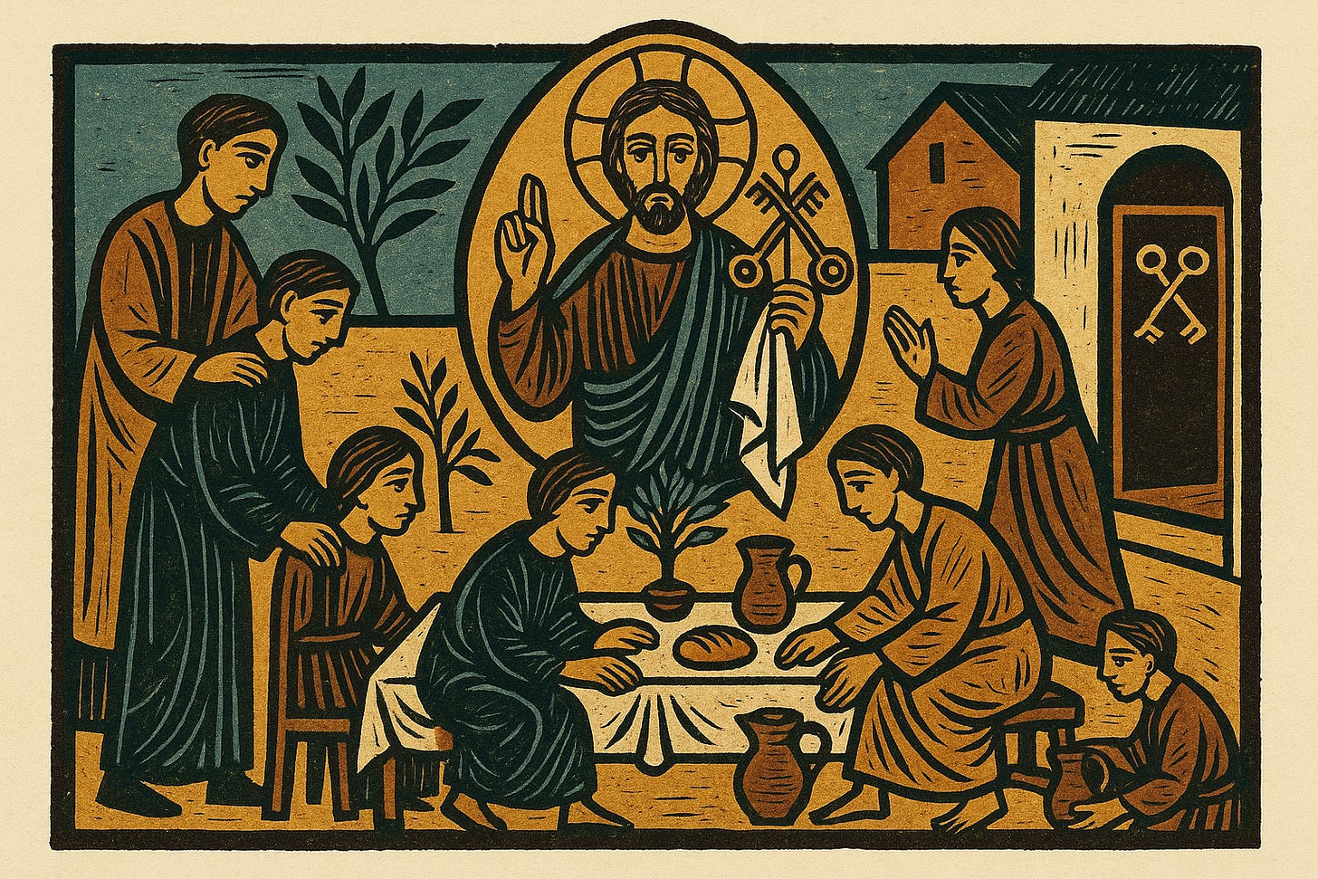 Que todo esto —disciplina que sana, consuelo que restaura, llaves que cuidan la mesa— se reconozca y se practique en la iglesia como un cuerpo colectivo y universal. Diferentes comunidades, un mismo cuidado; distintas historias, una misma mesa; numerosos acentos, una sola esperanza. Ya hemos recibido un encargo que abre puertas con verdad y amor; todavía esperamos el día en que todas las puertas permanezcan abiertas sin peligro. Hasta entonces, que nuestras casas y nuestras iglesias aprendan el arte de custodiar y de abrazar, con la misma luz mansa del Señor.