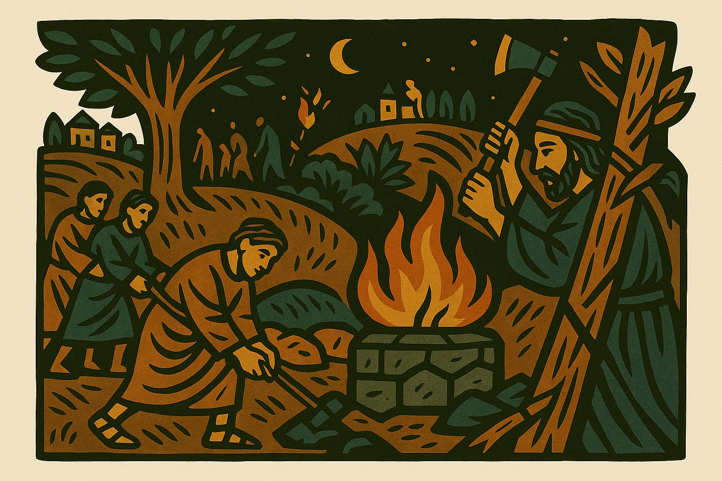 La pedagogía divina es paciente y firme. Primero un saludo: “El Señor está contigo”. Luego una mesa: “La paz sea contigo”. Ahora, un mandato que reconfigura amores. La secuencia importa. No empezamos con el hacha, empezamos con la voz y la paz. Pero la voz verdadera, cuando enraíza, siempre nos lleva a decisiones tangibles. El discipulado no se queda en metáforas: se vuelve martillo sobre madera, renuncia concreta, reconstrucción lenta de la devoción. En ese movimiento se notan las costuras del “ya” y el “todavía no”: ya somos de Él, por eso obedecemos; todavía no vemos todo lo que esa obediencia desatará. Ya hay altar nuevo en la colina; todavía el valle entero necesita luz.